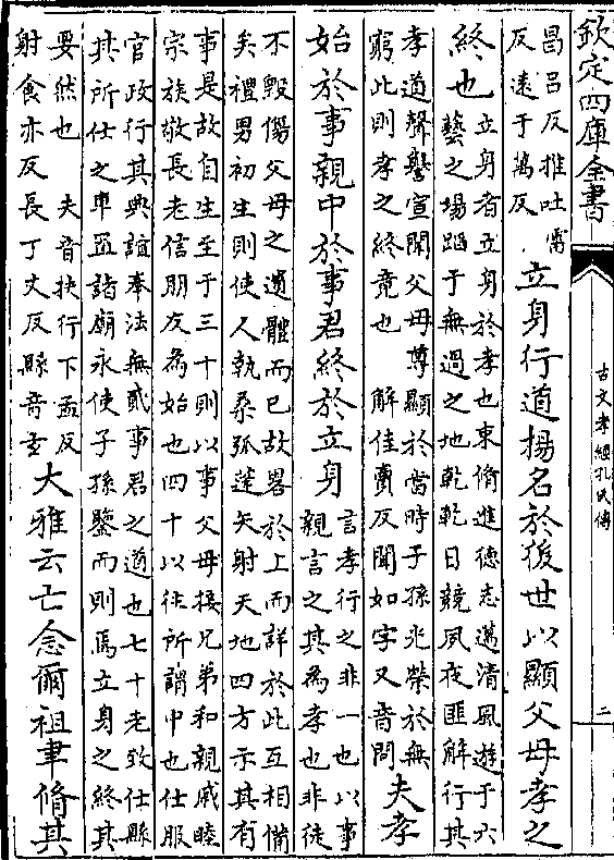 始于事亲中于事君终于立身(言孝行之非一也以事/亲言之其为孝也非徒)