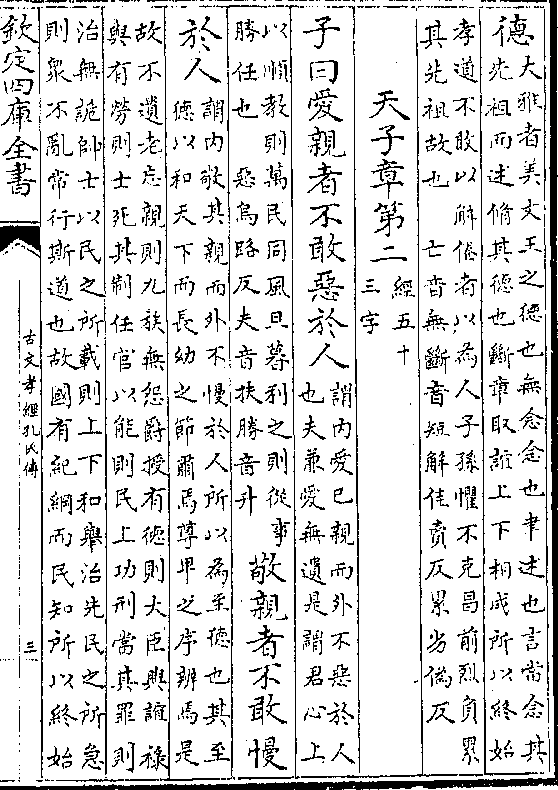 子曰爱亲者不敢恶于人(谓内爱己亲而外不恶于人/也夫兼爱无遗是谓君心上)