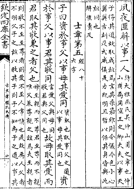子曰资于事父以事母其爱同(资取也取事父之道/以事母其爱同也)资
