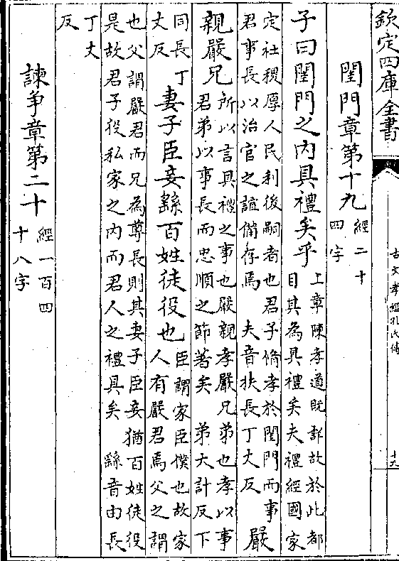 闺门章第十九(经二十/四字)子曰闺门之内具礼矣乎(上章陈孝道既详故于此都/目其为具礼矣夫礼经国家)