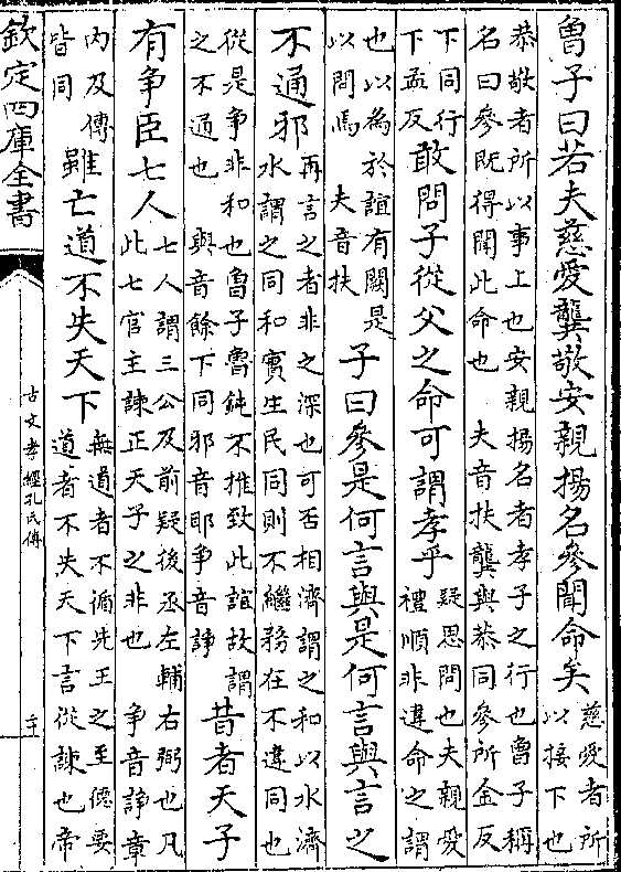 (下同行/下孟反)敢问子从父之命可谓孝乎(疑思问也夫亲爱/礼顺非违命之谓)