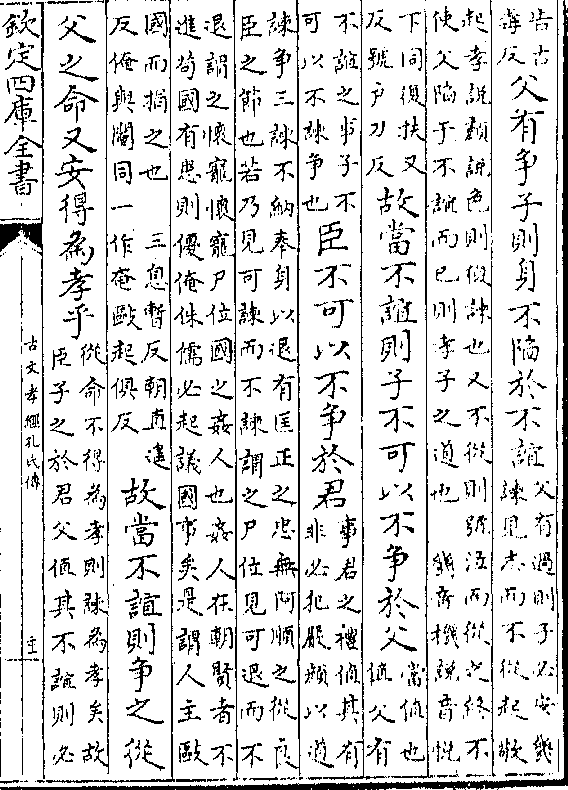 (下同复扶又/反号户刀反)故当不谊则子不可以不争于父(当值也/值父有)