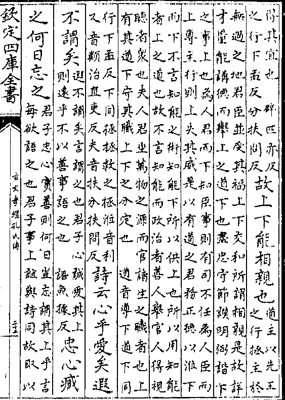 (得其宜也反辟匹亦反/之行下孟 分扶问反)故上下能相亲也(道王以先王/之行拯主于)(无过之地君臣并受其福上下交和所谓相亲是故详/才量能讲德而举上之道下也尽忠守节谟明弼谐下)