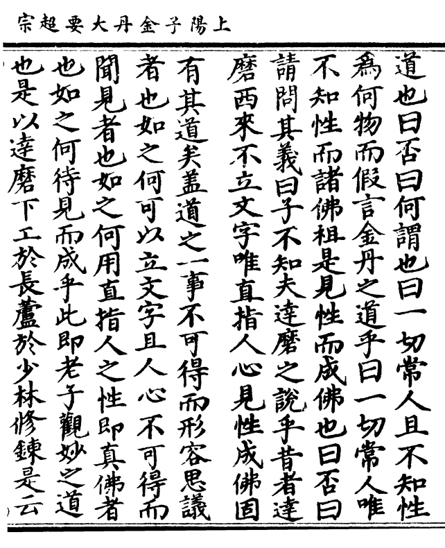 金丹之旨即达磨直指之旨即释迦独尊之旨即迦叶所受正法眼藏涅槃妙心之旨即