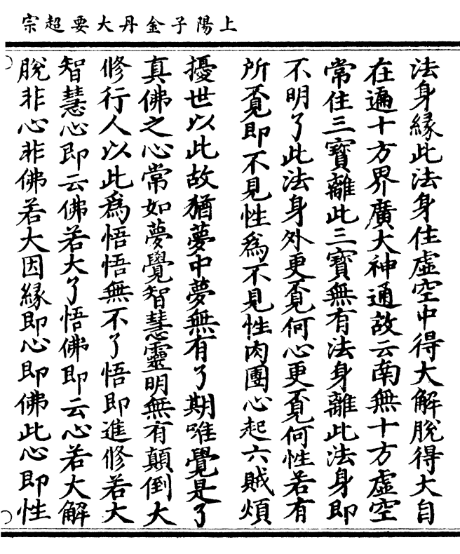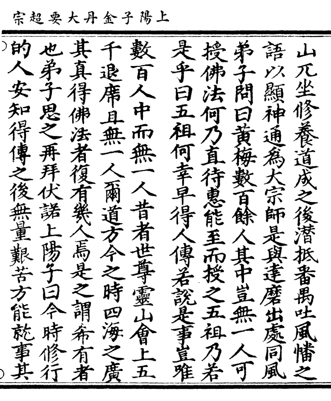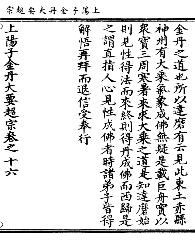 金丹之道也所以达磨有云见此东土赤县神州有大乘气象成佛无碍是载巨舟实以