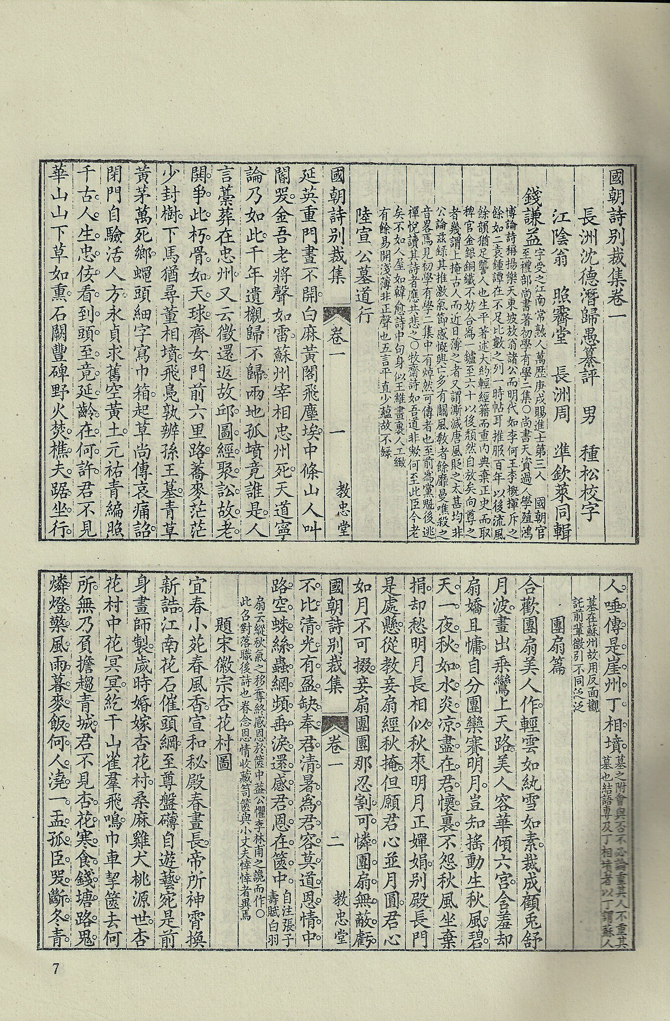 吾于唐人中首取陈正字、杜拾遗。陈如《感遇》三十章,杜如「三吏」「三别」、《奉先咏怀》《北征》等章,足以泄道人情,补察时弊,政其上也;又如白傅讽喻,风格少颓,然才丽之中,实含美刺,即其次也。吾所取法,必诗外有事在者。今读确士《一一斋诗》,虽宗不一家,家不一格,而于比兴为工,中有《拟古》《寒夜述怀》诸作,尤为魁垒杰出,因信工夫果在诗外,而非寻常拈髭弄墨者比也。由是益涵养性情,浸淫学术,不违于众论,不牵于毁誉,其所造更有超群轶伦者,又何以量吾确士耶?